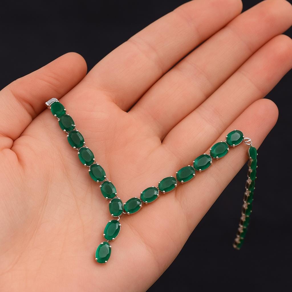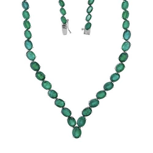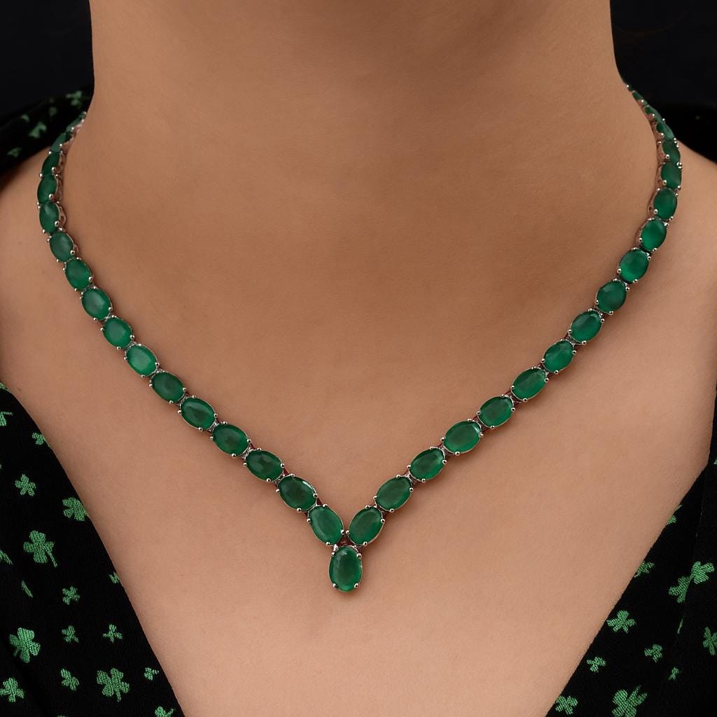 Immerse yourself in timeless luxury with this 47.19 Ct Natural Zambian Emerald Oval Gemstone Necklace, an extraordinary creation that radiates sophistication, grace, and rare beauty. Handcrafted in solid 18K white gold, this necklace showcases a captivating row of rich, vivid green oval-cut Zambian emeralds, each carefully selected for its exceptional color, clarity, and brilliance.