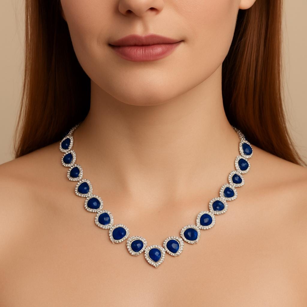 💎 Why You’ll Love It: This necklace is the epitome of royal elegance — bold yet refined. The deep blue sapphires symbolize wisdom and nobility, while the shimmering diamonds signify purity and everlasting beauty. Crafted with precision and passion, it’s a piece meant to be cherished for generations.