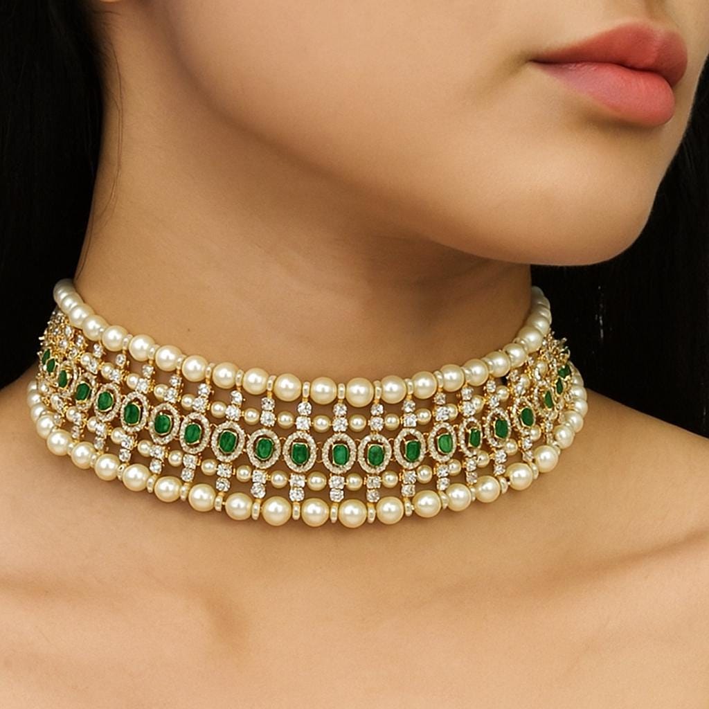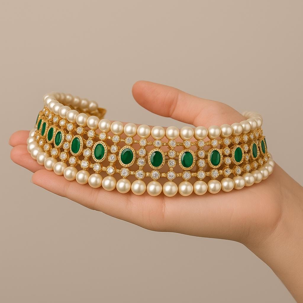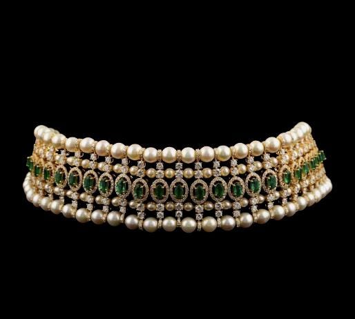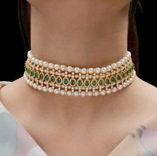 Every gemstone is meticulously hand-selected and set by skilled artisans to ensure impeccable quality and harmony. The soft luster of pearls perfectly contrasts with the vivid green emeralds, while the sparkling diamonds add a touch of everlasting brilliance. Whether for a wedding, gala, or anniversary, this choker necklace is a timeless treasure meant to be cherished for generations.