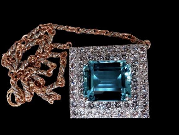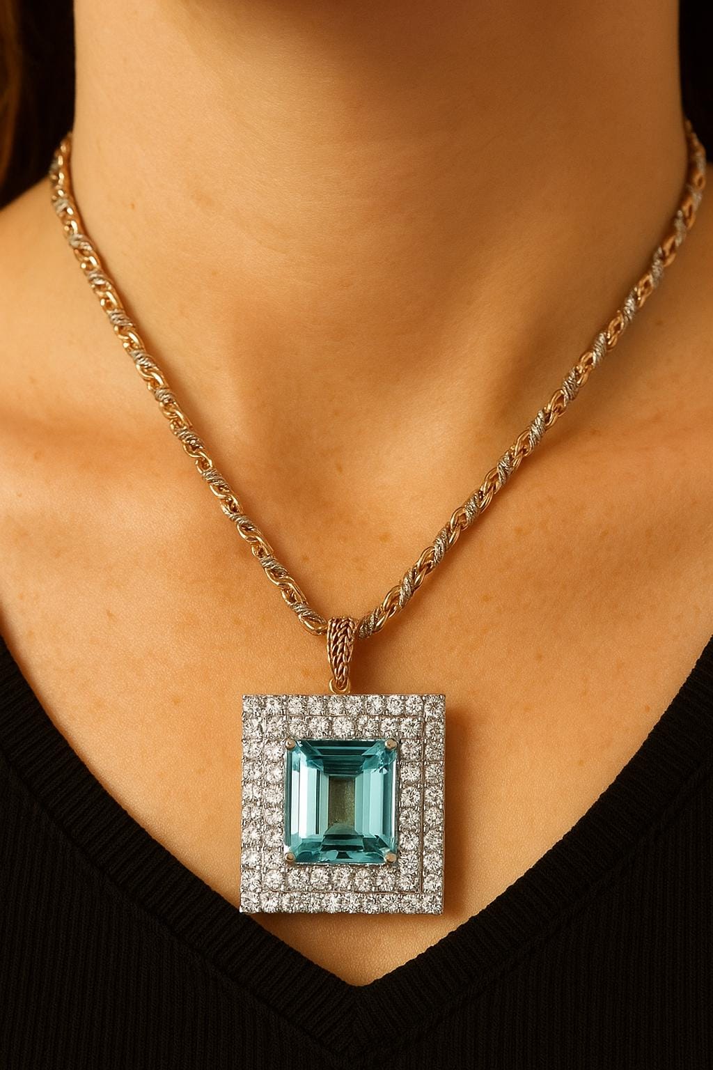 ✨ GIA Certified 25.48Ct Natural Blue Aquamarine & 15Ct Diamond Necklace in 18K White Gold ✨