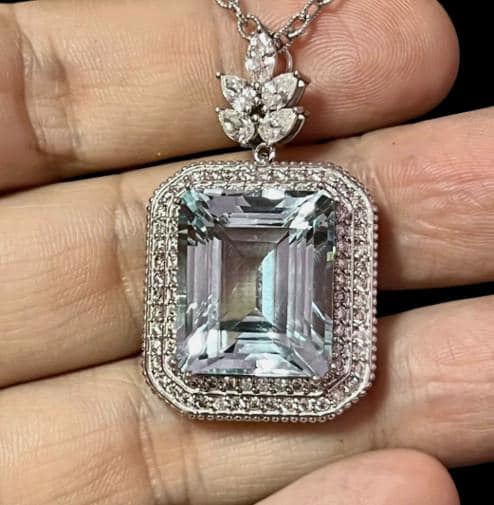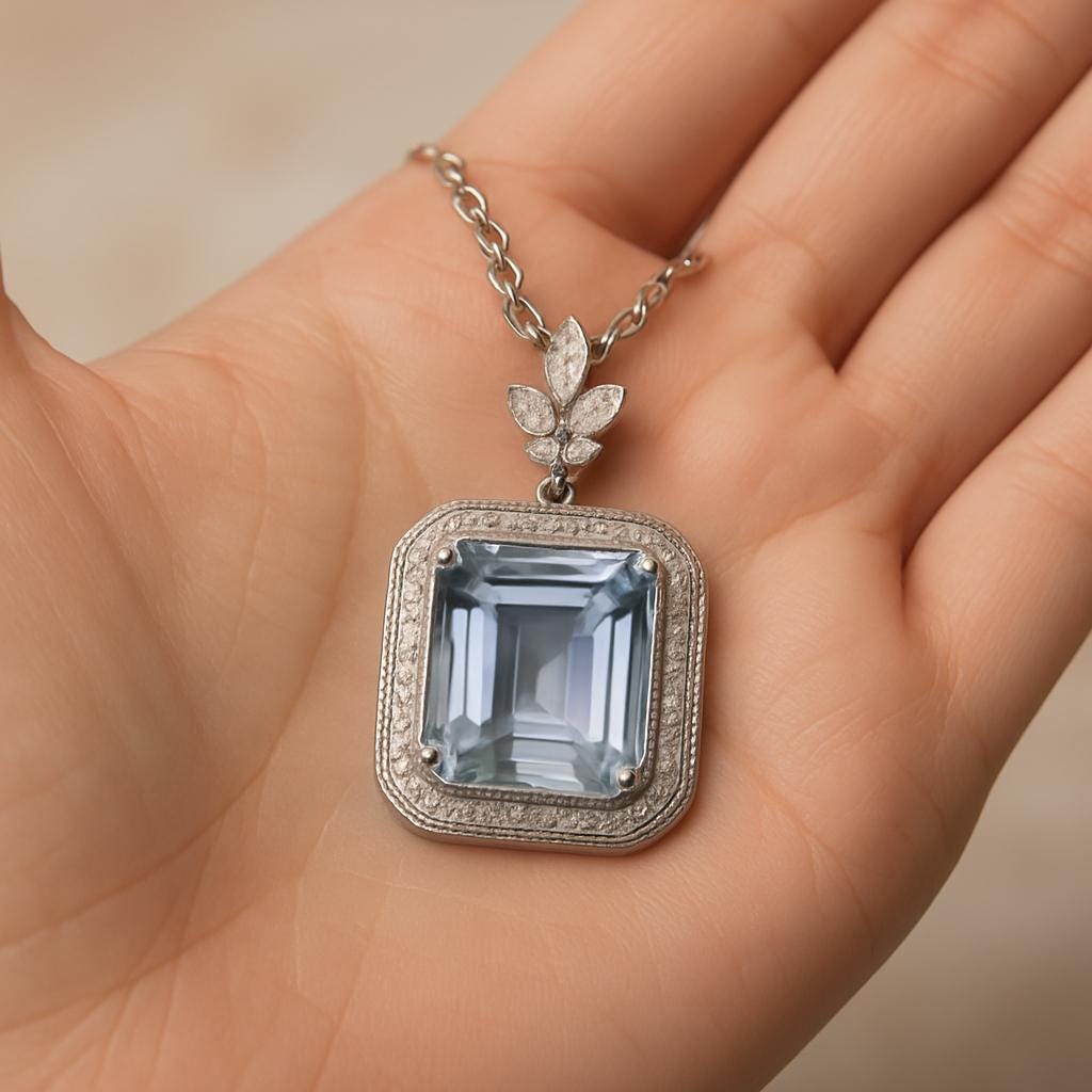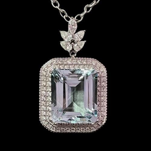 ✨ GIA Certified 27Ct Natural Aquamarine & Diamond Necklace in 18" White Gold ✨
