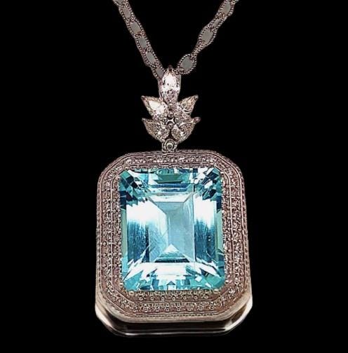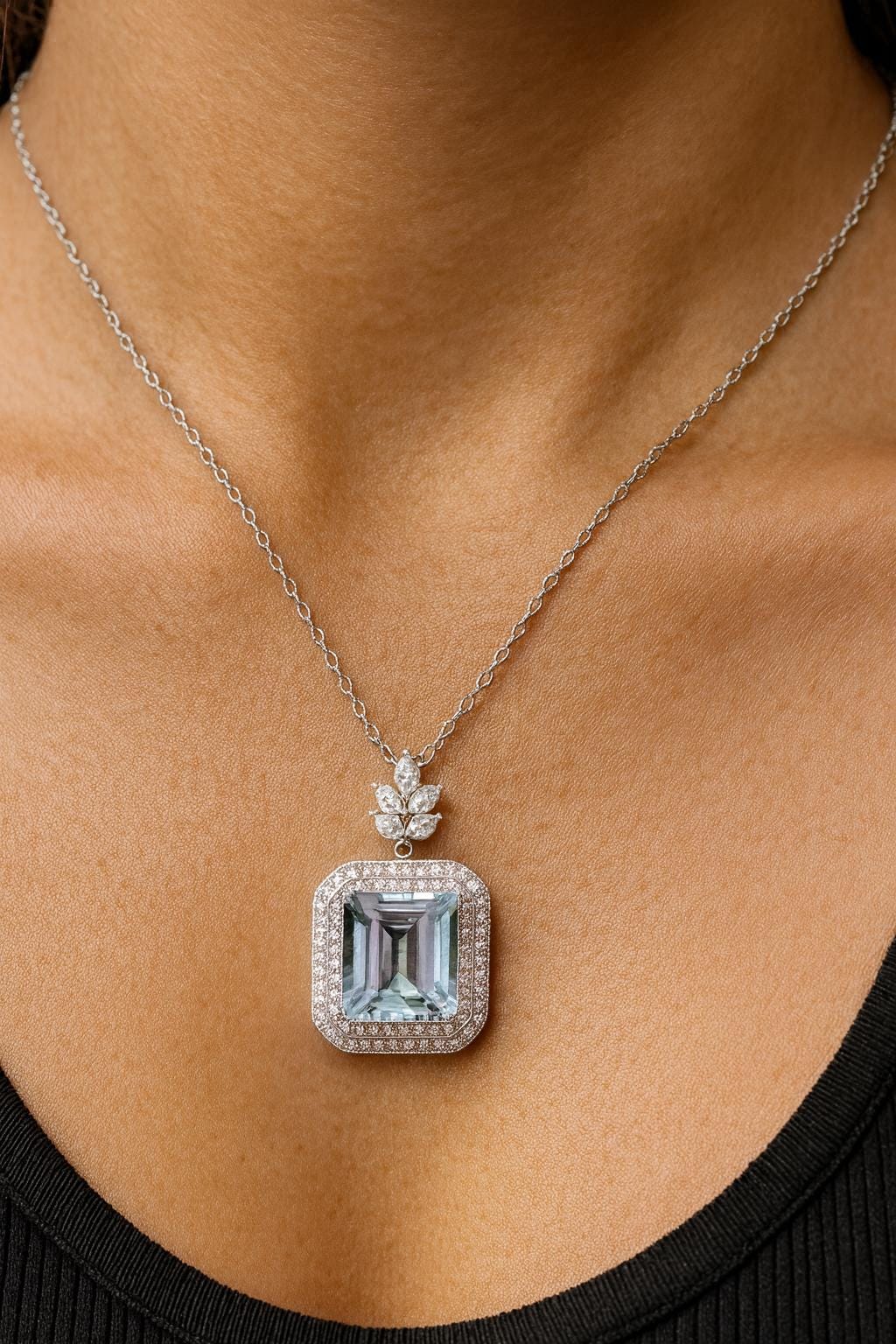 Elevate your jewelry collection with this breathtaking GIA Certified Natural Aquamarine & Diamond Necklace, showcasing an impressive 27 total carat weight of premium gemstones. Set in elegant 18" white gold, this masterpiece exudes sophistication, brilliance, and timeless luxury.