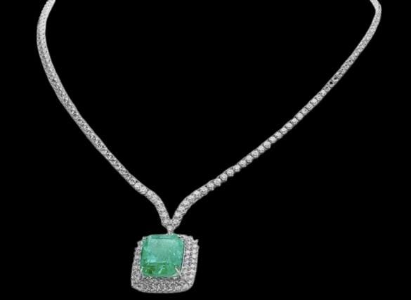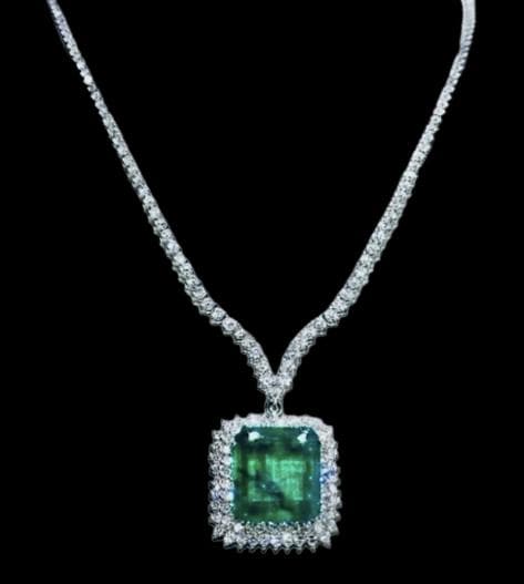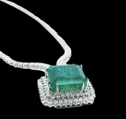 ✨ GIA Certified 27.70Ct Natural Emerald & Diamond Necklace in 18K White Gold ✨