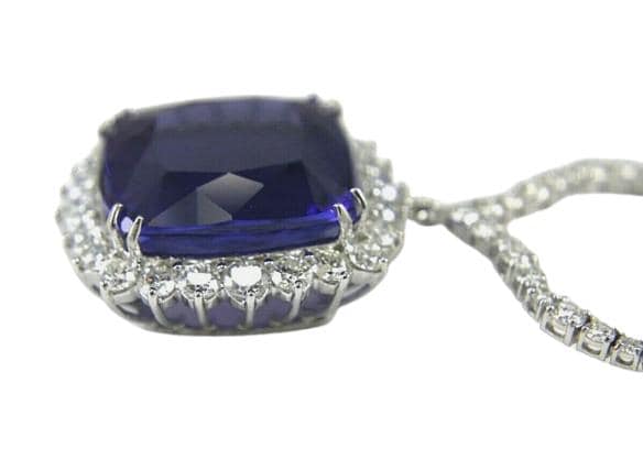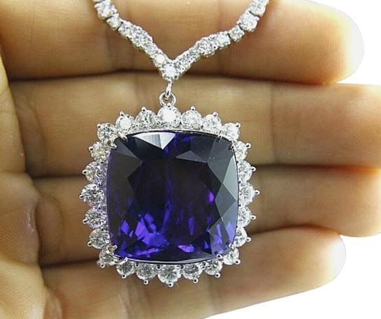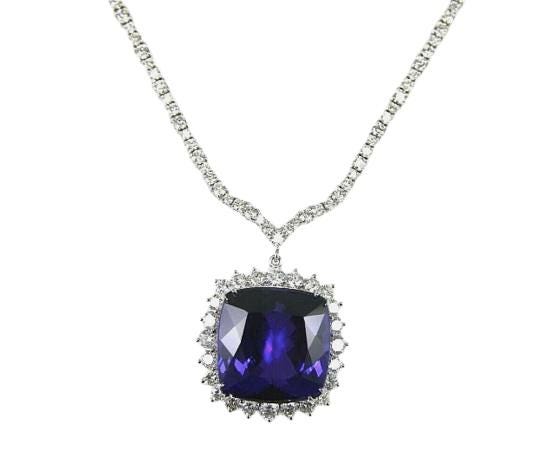 ✨ 91.10Ct Tanzanite & Diamond Tennis Necklace Pendant in 18K White Gold ✨