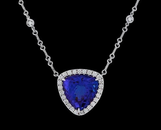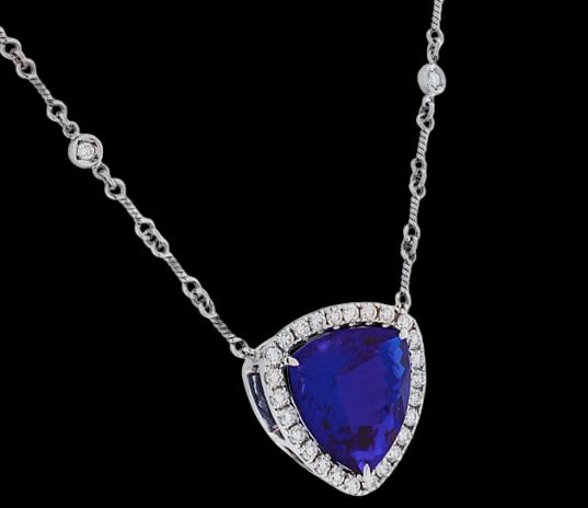 Experience the rare beauty and brilliance of this GIA Certified 20.97-carat Tanzanite & Diamond Necklace, handcrafted in luxurious 18K white gold. The centerpiece is a magnificent natural tanzanite—rich in deep violet-blue color, exceptional clarity, and mesmerizing brilliance. Its size, color intensity, and certification make it a true collector's gemstone.