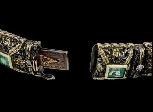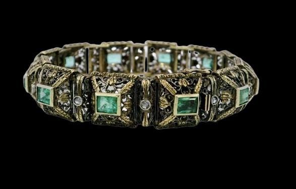 Indulge in timeless elegance with this breathtaking Emerald and Diamond Bracelet, meticulously handcrafted in 18K Yellow Gold and Silver. Featuring approximately 5.43 carats of natural emeralds paired with sparkling diamonds, this stunning bracelet radiates luxury, sophistication, and classic beauty—perfect for collectors, gifting, or elevating your own fine jewelry collection.