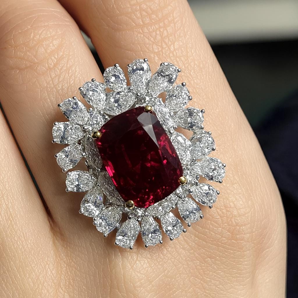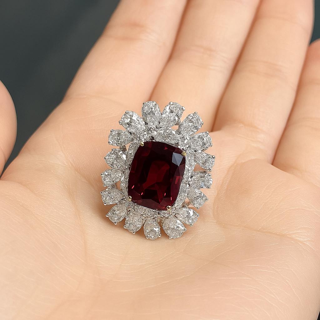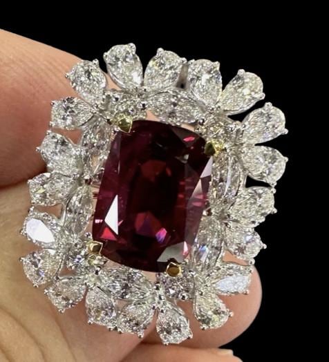 5.07ct Thai Ruby Ring GIA Certified | Natural Thai Ruby & Diamond Ring in 18K White Gold | Oval Ruby Engagement Ring | Luxury Fine Jewelry | High-End Statement Ruby Diamond Ring for Her