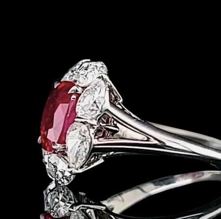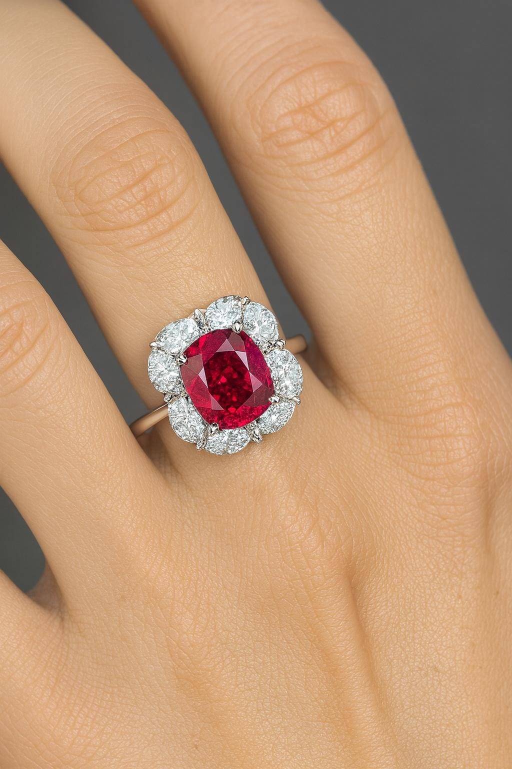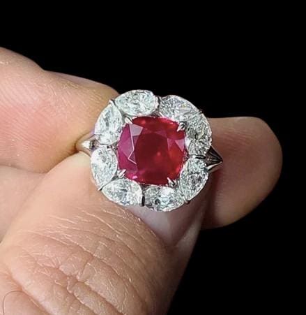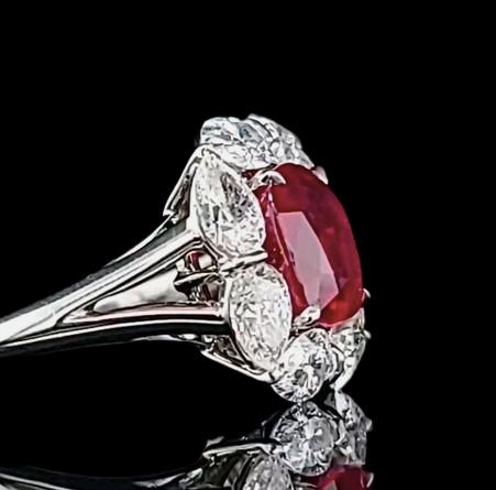 Indulge in the rarest level of beauty and craftsmanship with this extraordinary 3.03-carat Natural Flawless Burma Ruby, expertly cut into a glowing cushion shape and certified by GRS. Set in premium platinum, and framed by high-brilliance natural diamonds, this ring is a true masterpiece of luxury fine jewelry—crafted for those who desire only the exceptional.