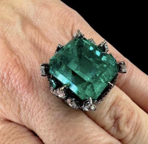 ✨ AGL Certified 37.53ct No-Oil Emerald & Diamond Ring – White Gold ✨