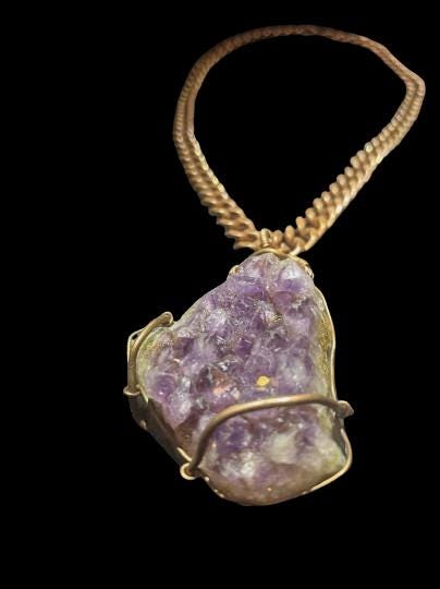 Elevate your style with this stunning Rare Copper Cuban Link Necklace featuring a bold, natural Raw Amethyst Crystal Stone Pendant. Hand-crafted with care, this unique piece blends the rugged beauty of earth-mined amethyst with the warm, vintage charm of solid copper chain links. Each necklace is one-of-a-kind—no two crystals are ever the same.