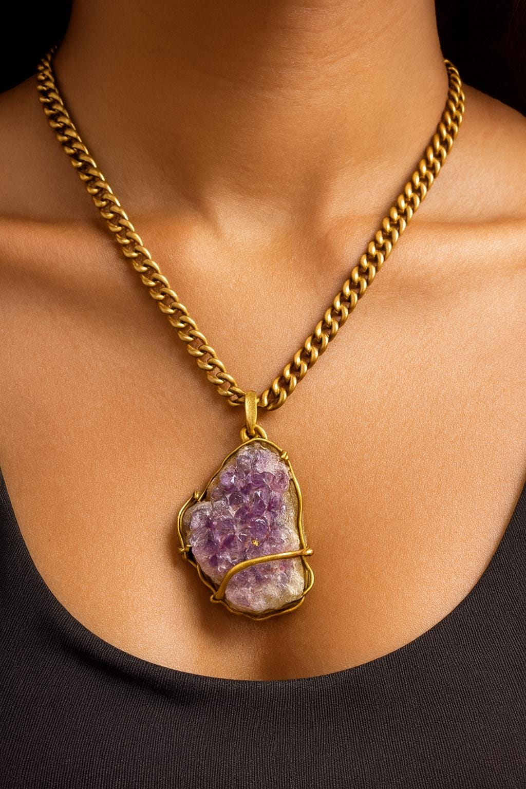 ✨ Rare Copper Cuban Link & Raw Amethyst Crystal Stone Necklace – Handmade Statement Jewelry ✨