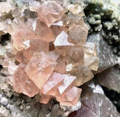 Formation: Large fluorite clusters, quartz growths & raw mineral surfaces