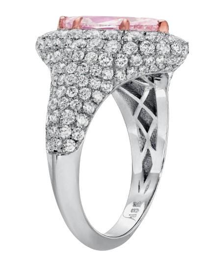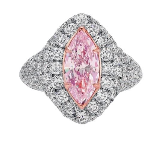 ✨ Rare GIA Certified 3.90 Ct VVS1 Light Pink Marquise Diamond Pavé Ring – Ultra-Luxury Fine Jewelry ✨