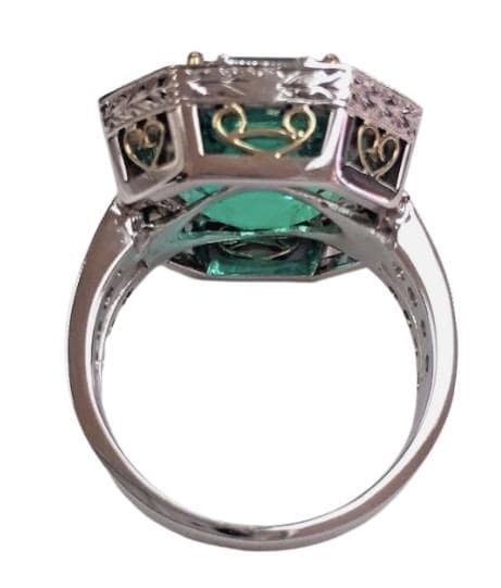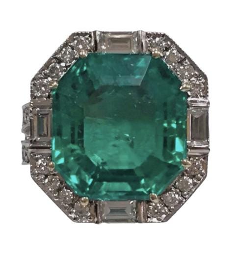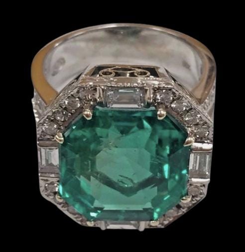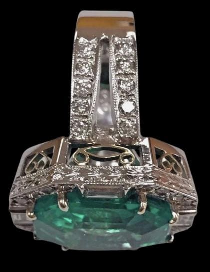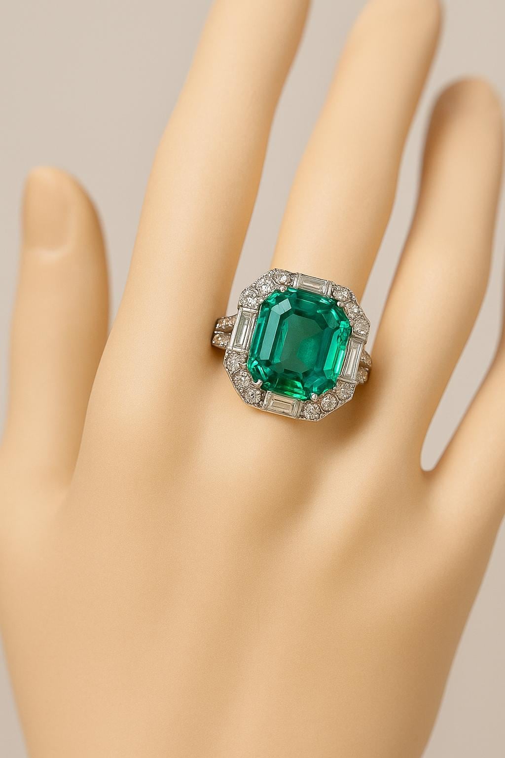 This ring combines the old-world charm of a true estate jewel with the prestige of a large, genuine 11.46ct emerald—a rarity that continues to appreciate in value. Its architectural diamond halo enhances the emerald’s glow, while the 18K white gold setting provides a timeless and elegant finish. Each detail expresses craftsmanship, rarity, and unmatched sophistication.