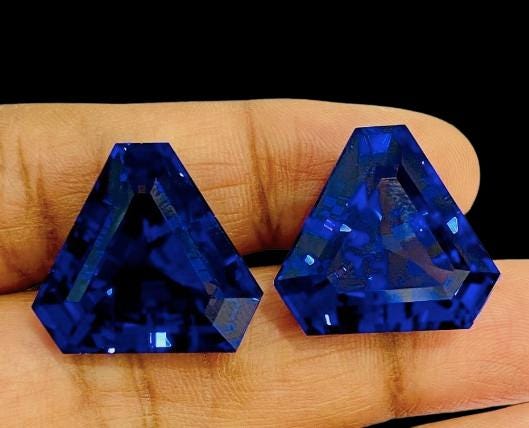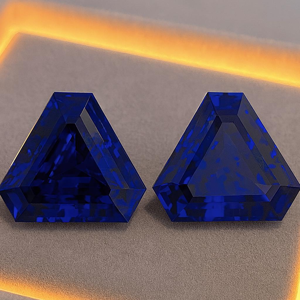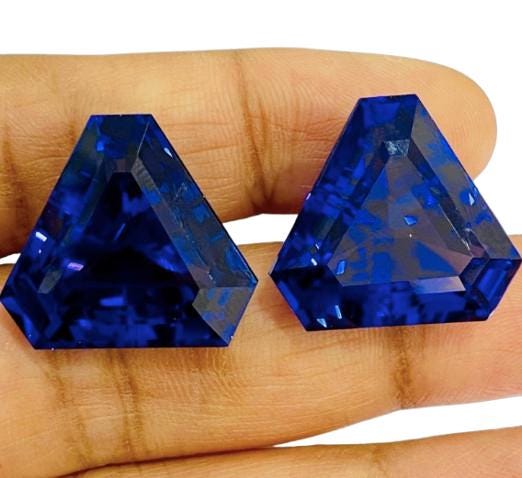Presenting an exceptional 61.55 carat matched Trillion Cut Tanzanite pair, displaying the finest purple-blue top color that Tanzanite is globally admired for. This rare and beautifully matched pair showcases premium transparency, vivid saturation, and precision faceting—perfect for luxury jewelry designers and collectors seeking large, investment-grade gemstones.