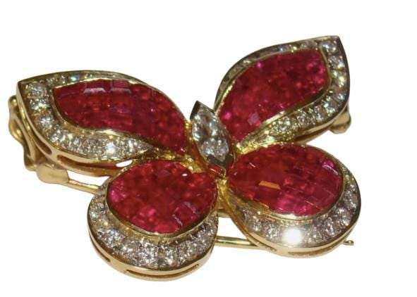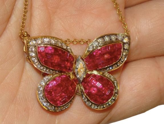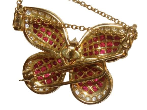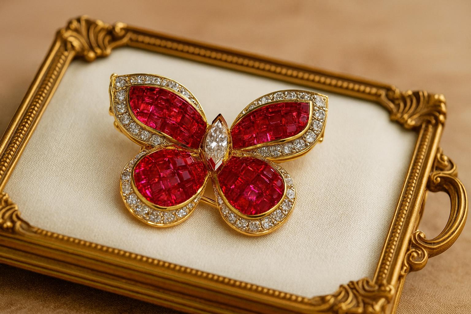 Each ruby displays vibrant color saturation, while the diamonds add a shimmering halo that enhances the butterfly’s graceful outline. Whether gifted to a loved one or added to your personal luxury collection, this exquisite jewelry piece is designed to be cherished for generations.