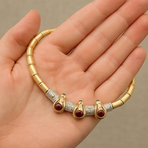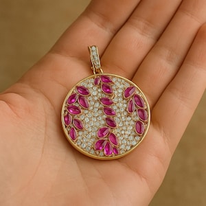 Weighing an impressive 99.1 grams, this substantial heirloom-quality piece can be worn as both a pendant and a brooch, offering versatile styling for special occasions, celebrations, or as a standout collector's item. The meticulous craftsmanship, solid gold foundation, and high-grade gemstones result in a piece that radiates brilliance from every angle.